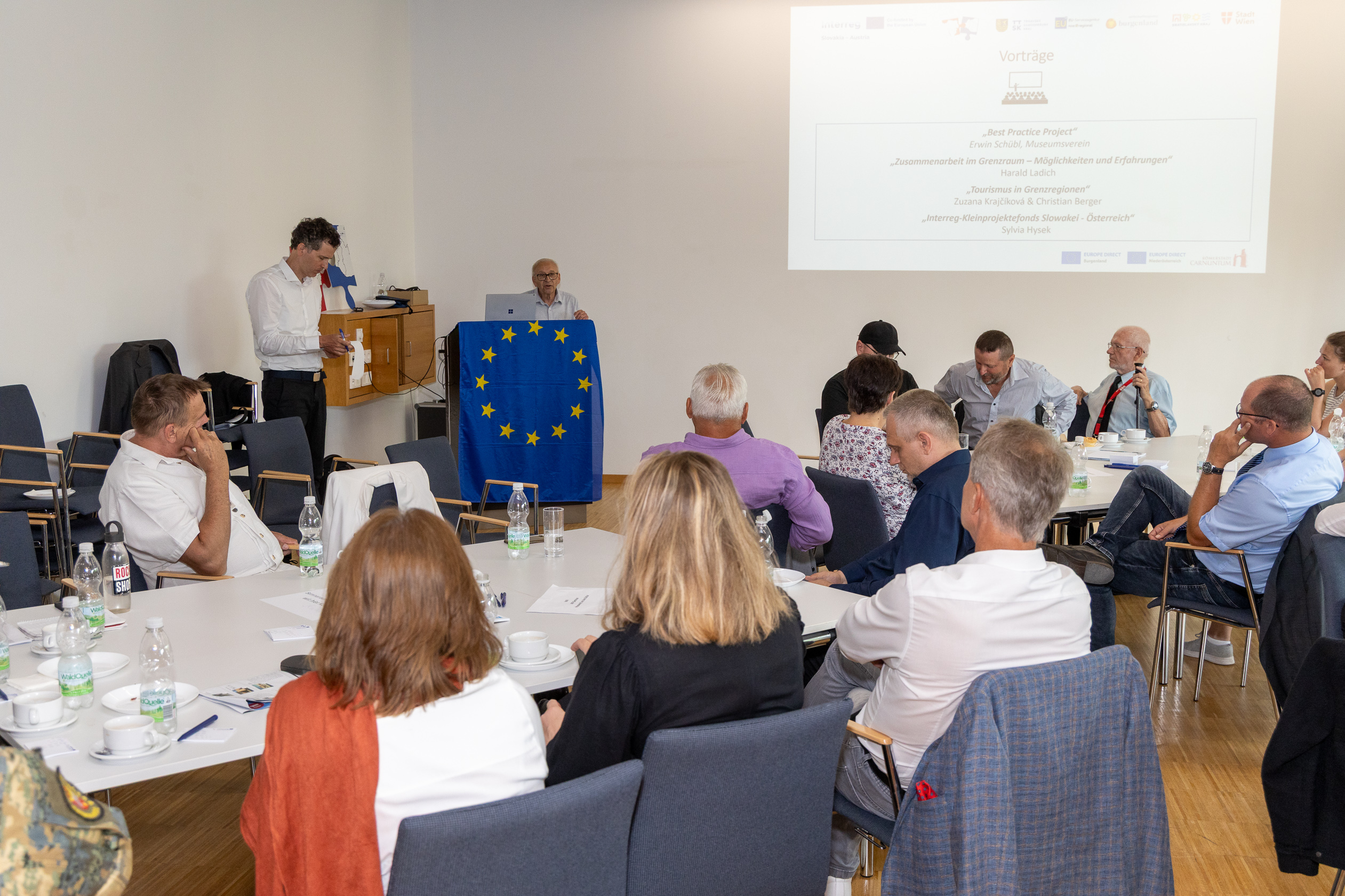 Po prehliadke nasledovala prezentácia úspešného malého projektu realizovaného v rámci programu Interreg V-A AT-CZ, ktorý bol zameraný na 30. výročie pádu železnej opony. Predstavili sa výstupy projektu – výstava, odborný katalóg, verejné podujatia a krst publikácie.